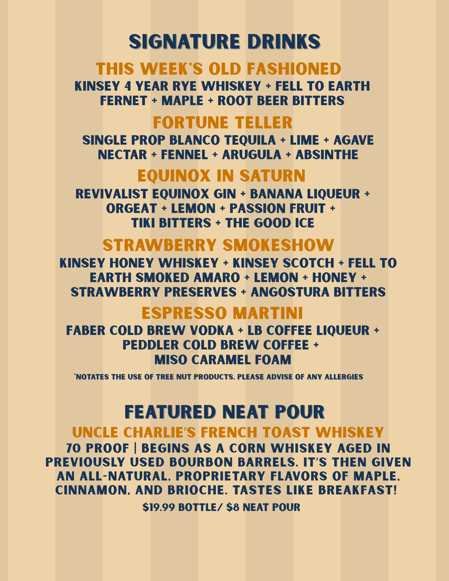 We also offer a rotating local selection of wine, beer, cider, and seltzers. As well as a collection of Non-Alcoholic products.